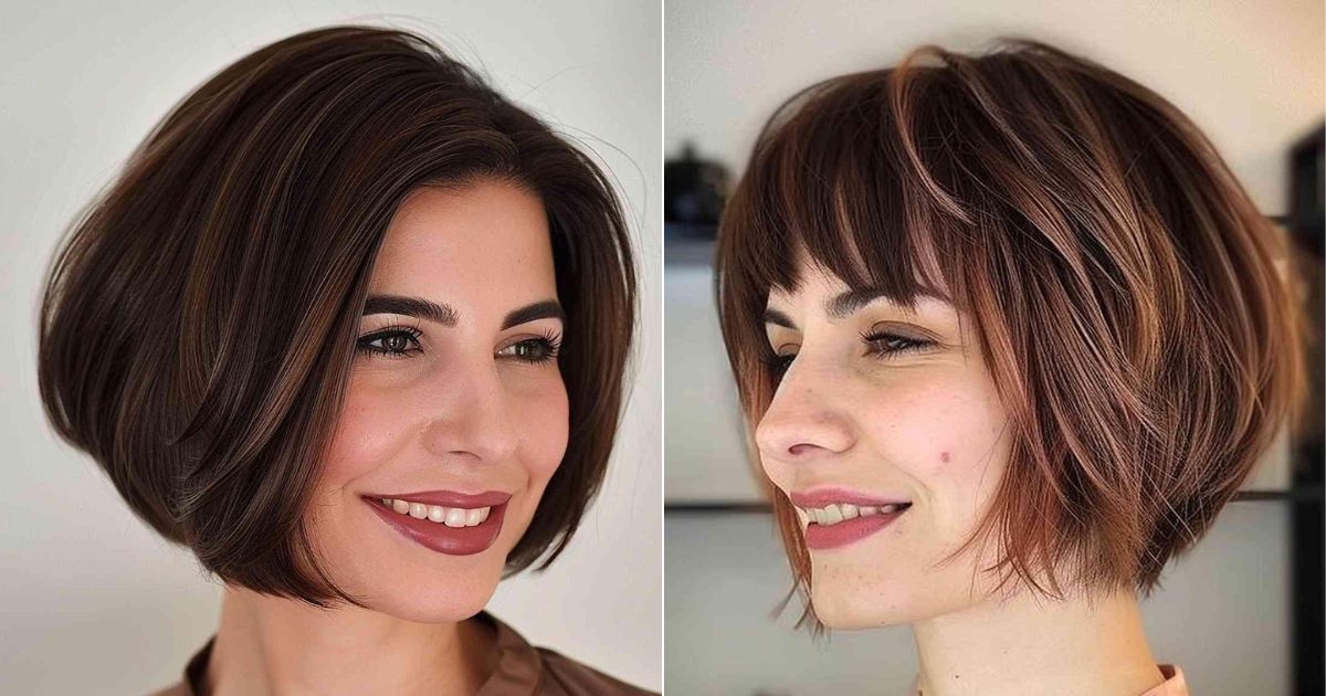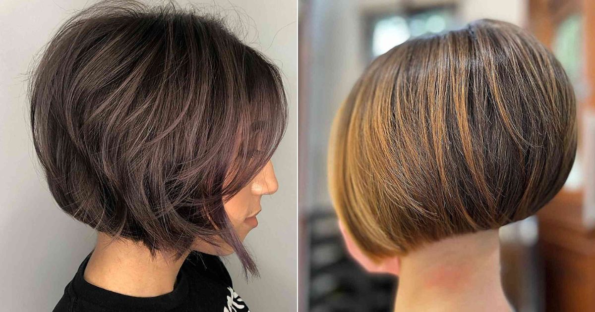 Short hair is the best option when opting for a quick yet sleek haircut. Especially with this edgy haircut which is shaped so professionally with the U-shaped cut with a deep chestnut hair color and caramel highlights with a side bang. U-shaped haircuts are an option when wanting a sexier look.